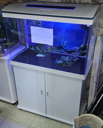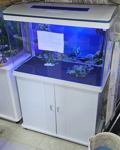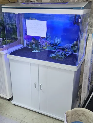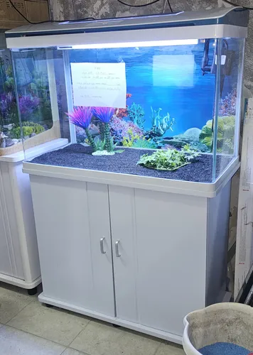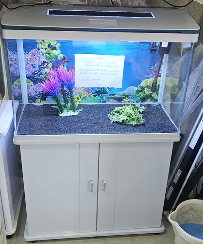 אקווריום חדש מהתצוגה מדגם CRM 820, בצבע לבן, מגיע עם הארונית המקורית שלו. מידות: אורך 80סמ, עומק 38סמ סמ בגובה 56 סמ. בערך 135 ליטרים. כולל פילטר, תאורת לדים RGB מחליפה צבעים, חצץ, תמונת רקע וקישוטים.
