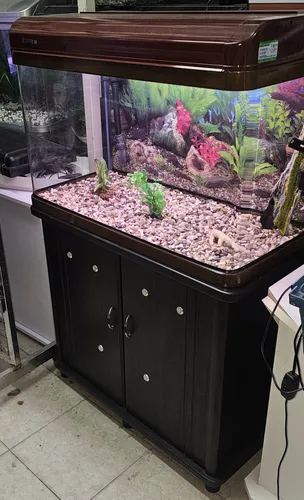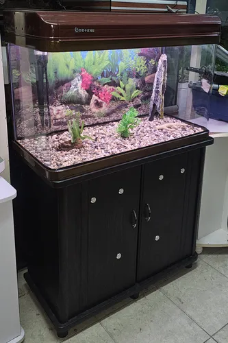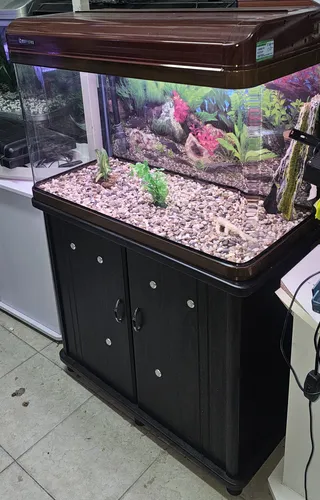 אקווריום MINJIANG מהתצוגה 150ליטרים. אורך 80סמ. רוחב 37 סמ. וגובה 56 סמ, מגיע עם הארונית המיקורית שלו, תאורה. פילטר, חצץ, תמונת רקע וקישוטים. אפשרות לטריד אין ולהובלה.