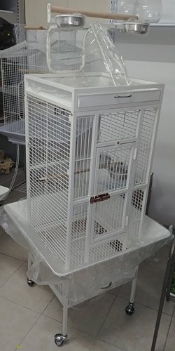 כלוב חדש A10 ברמה גבוהה, מהאריזה לג'אקו ותוכים גדולים האכלת יד במידות 45 על 45, גובה כולל 160 סמ. צבע בז', מגיע עם כלי אוכל ושתיה ומקלות.