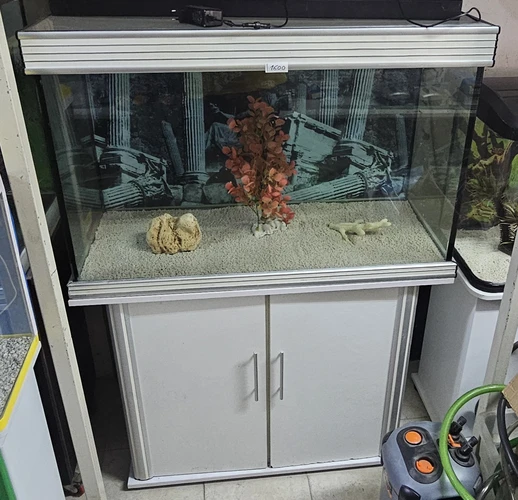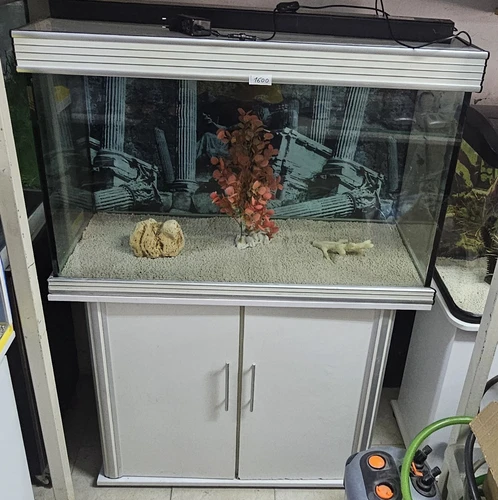 אקווריום של חברת אנוביאס לבן באורך מטר עם ארונית ותאורה. 210 ליטרים במידות 100 על 40 בגובה 65 סמ. מגיע עם כל מה שרואים בפנים.